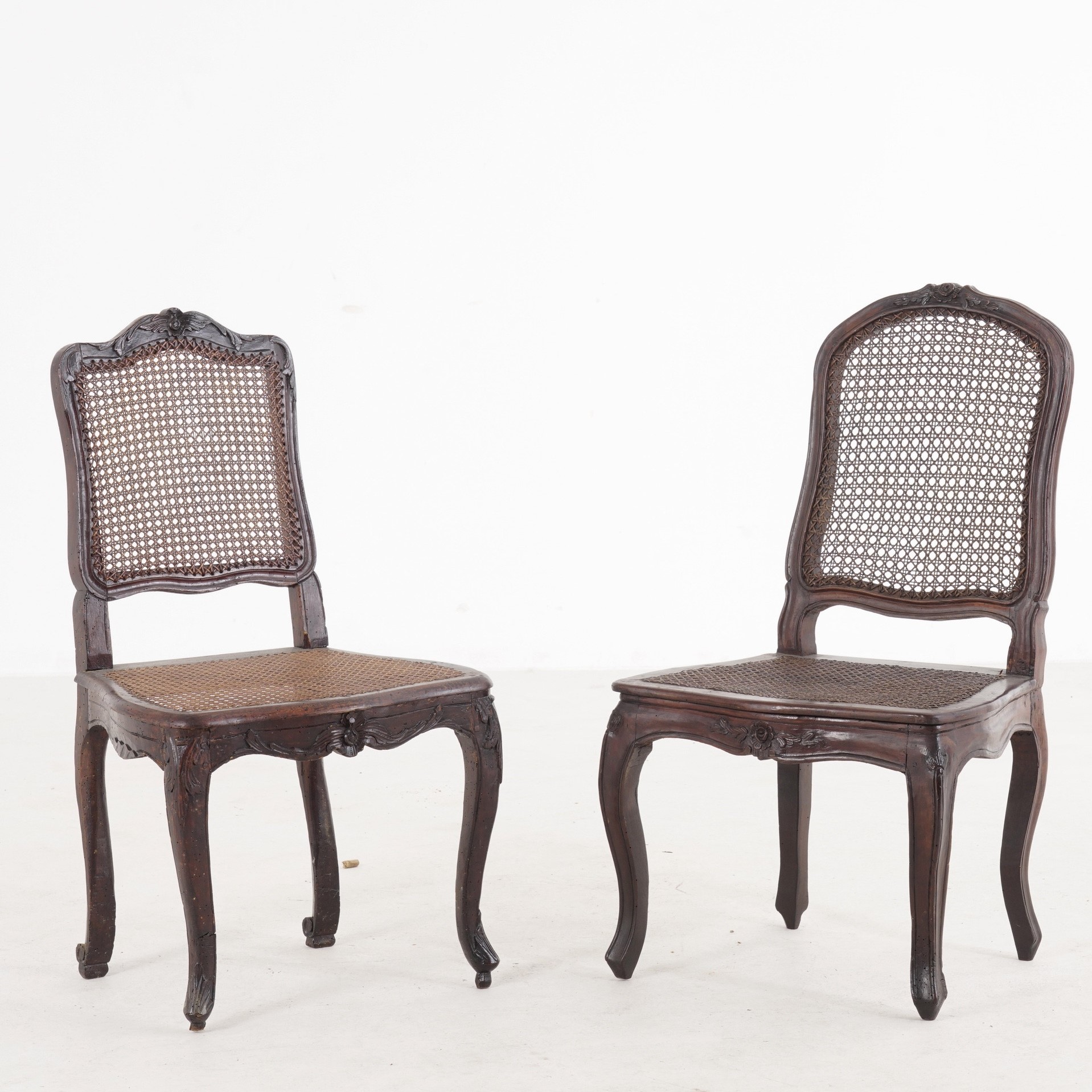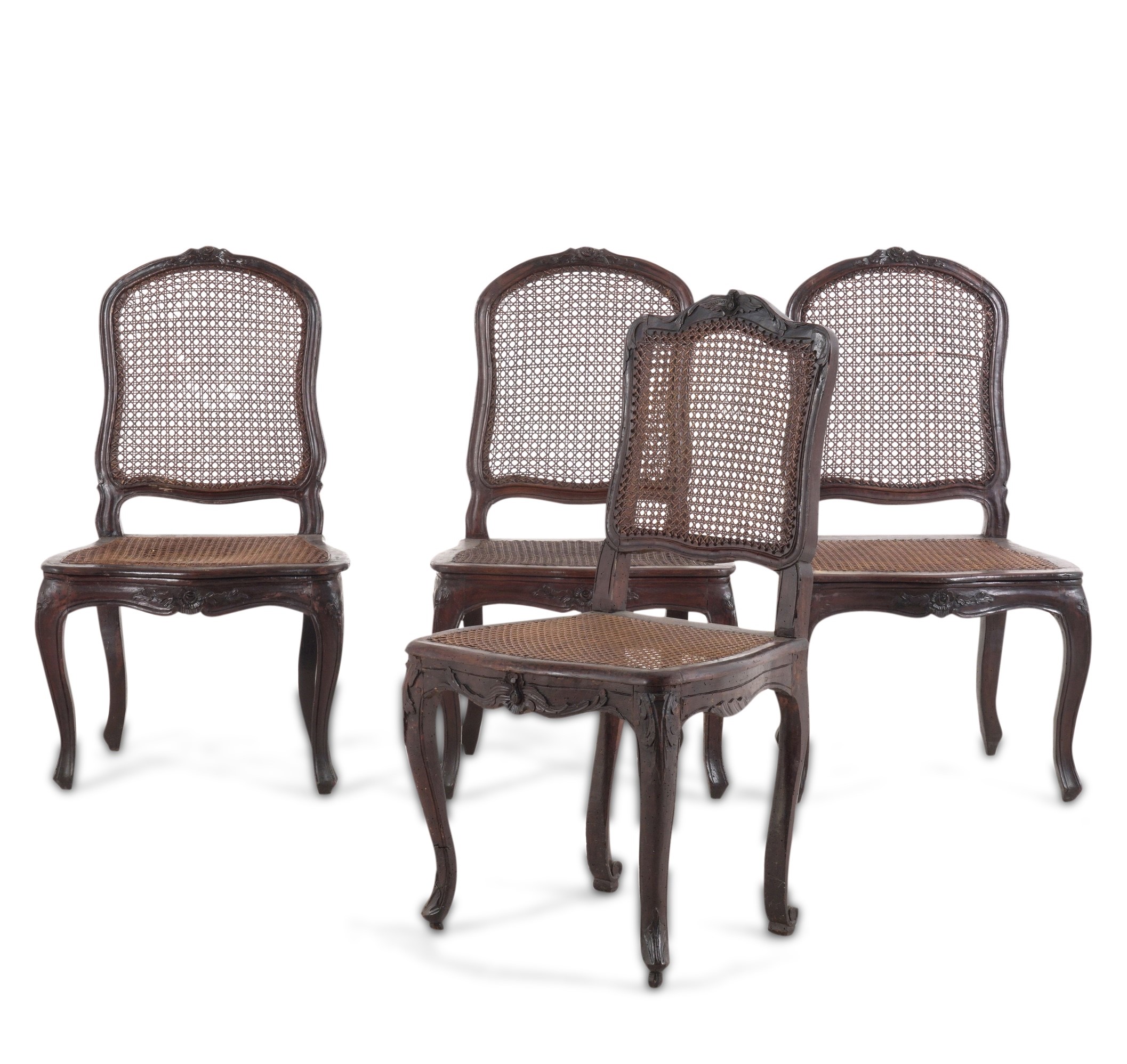 Gruppo di tre sedie e una diversa Luigi XV in legno intagliato. XVIII secolo