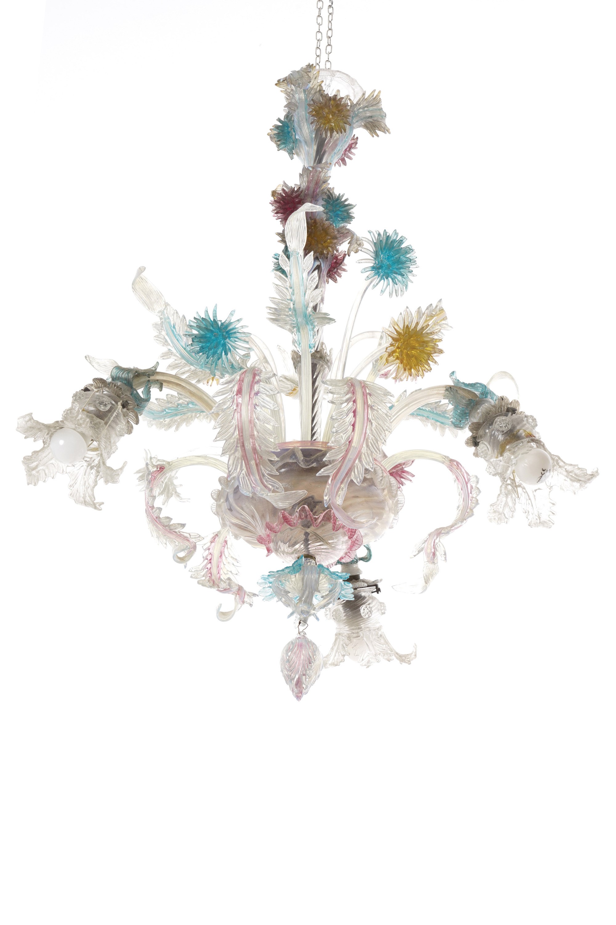 Lampadario a tre luci in vetri di Murano. XX secolo