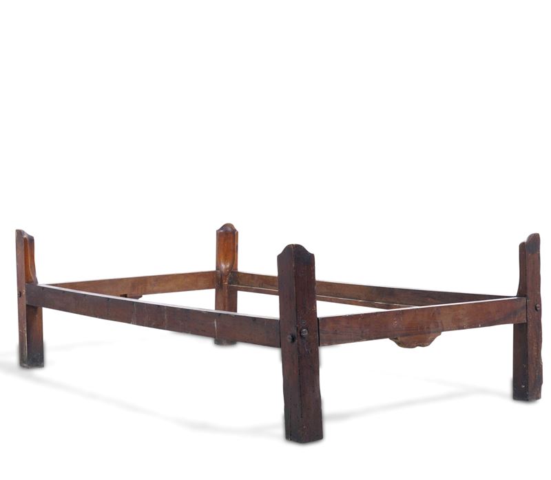 Letto a cartoccio in legno intagliato. XVIII-XIX secolo
