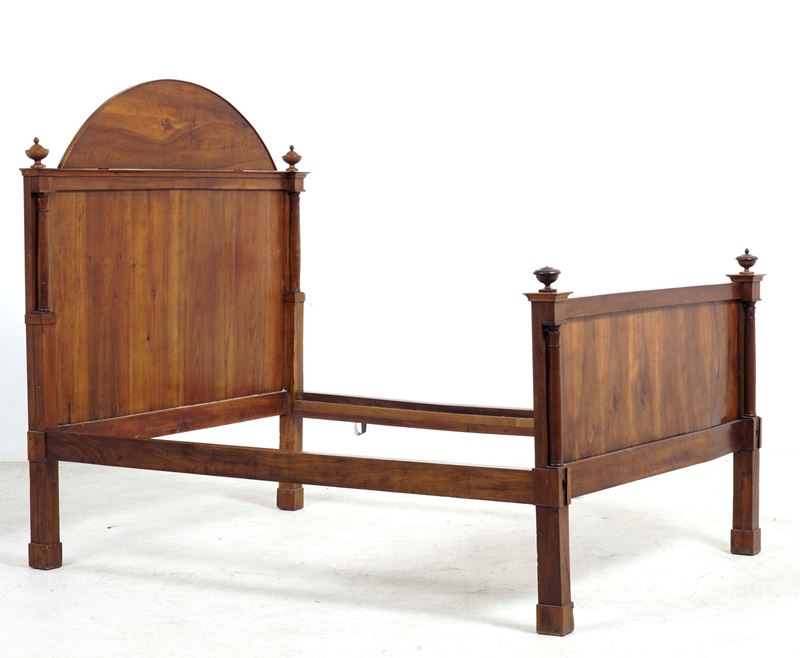 Testiera centinata, montanti arricchiti da colonnine e pigne
