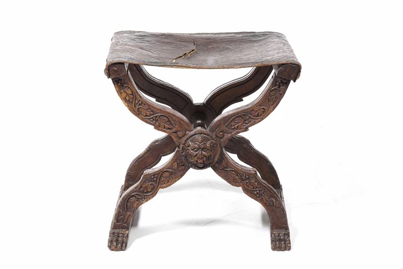 Sgabello in noce intagliato. Toscana, XVII-XVIII secolo
