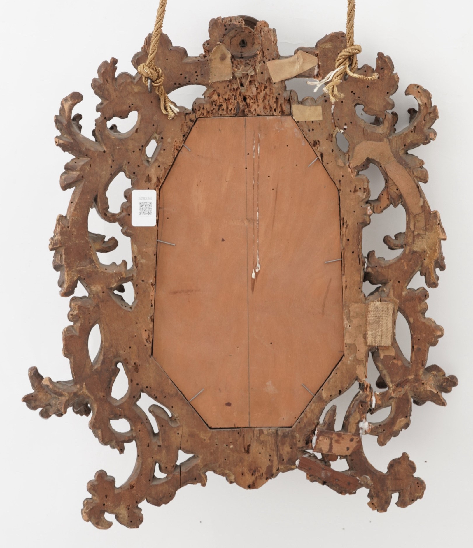 Specchiera a cartoccio in legno intagliato e dorato. XVIII-XIX secolo