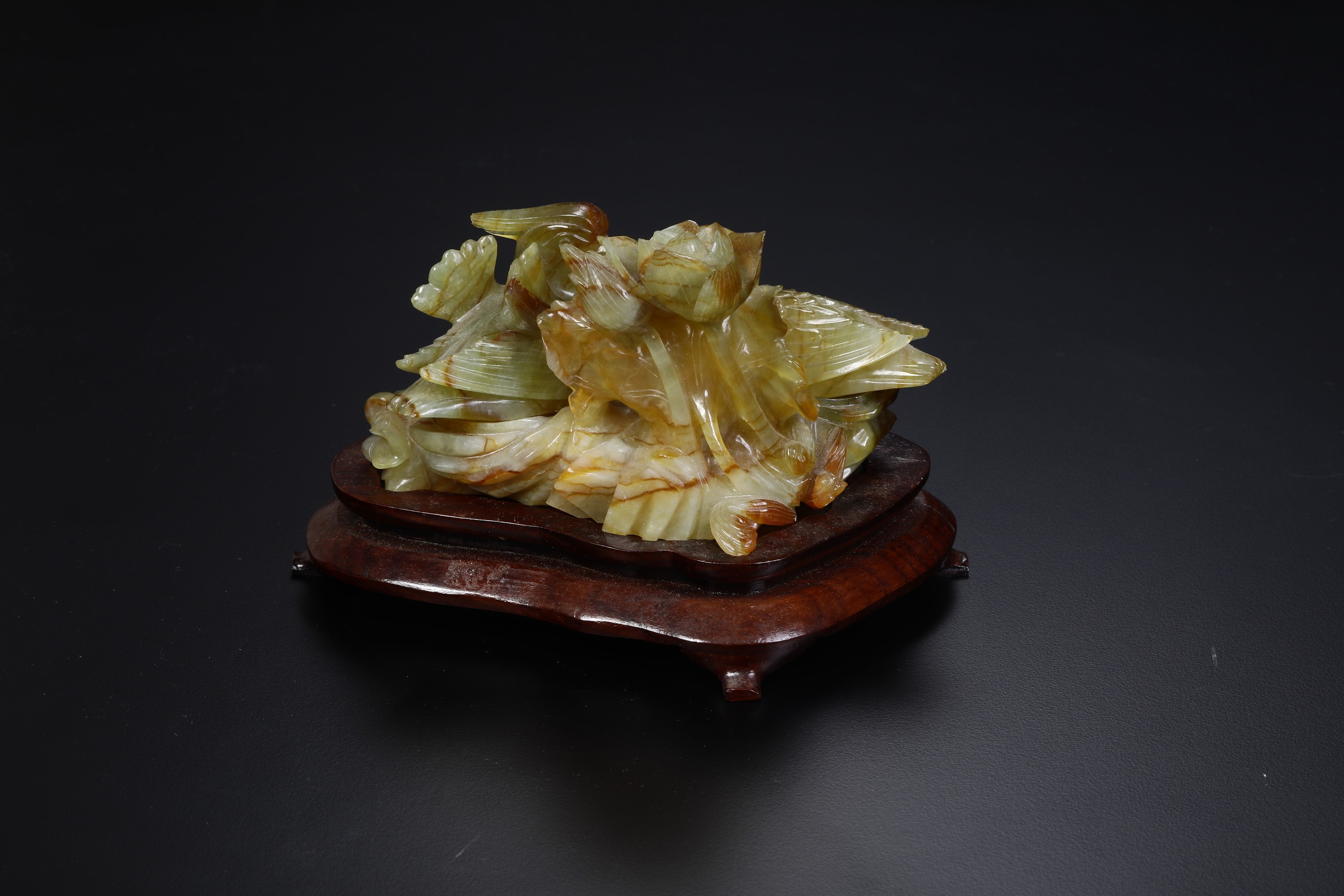Statuina della fertilità in giada con base in legno. XX secolo