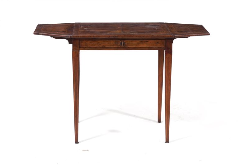 Tavolino ad alette Luigi XVI lastronato e filettato. XVIII-XIX secolo