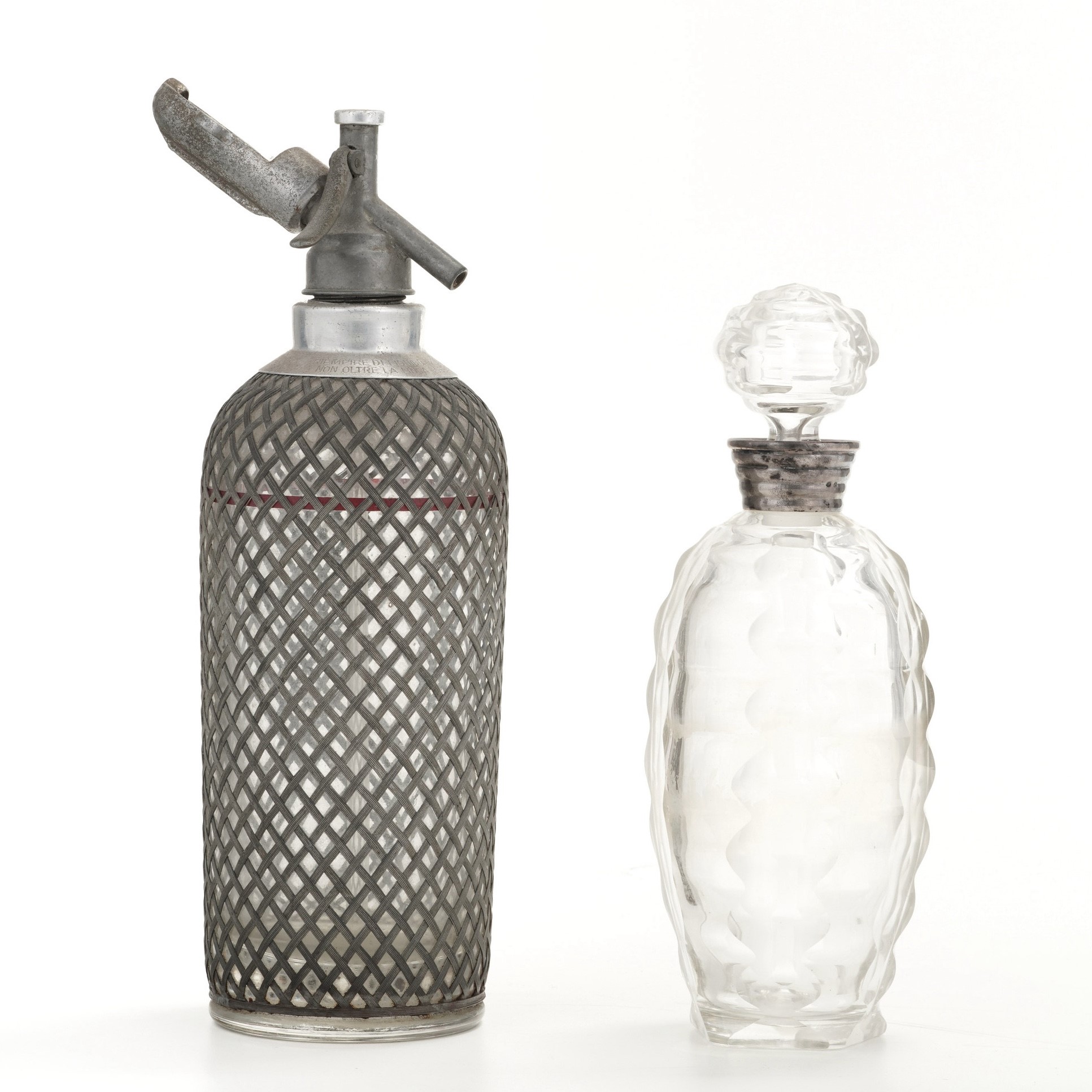 Una bottiglia da liquore e una da selzt