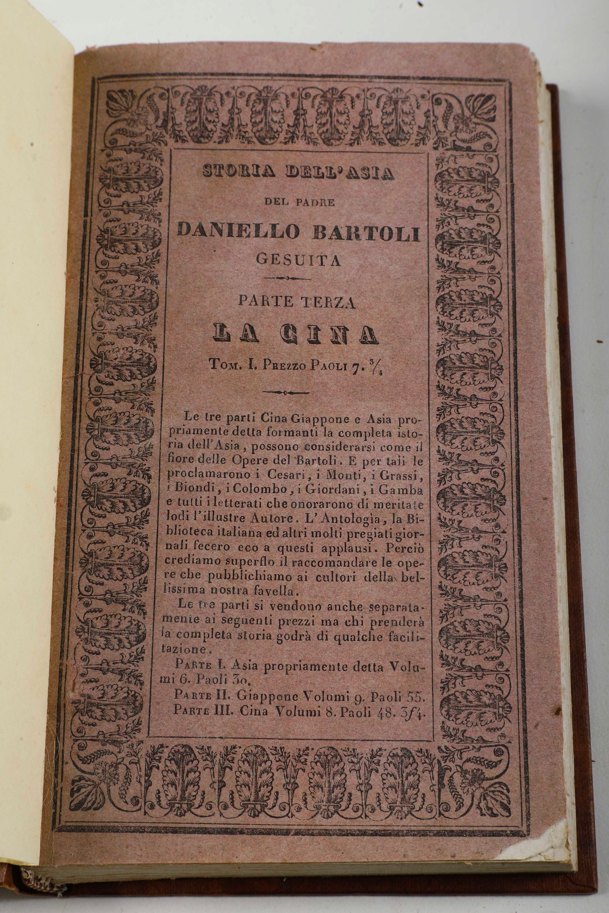 Bartoli Daniello (1608-1685) La Cina... parte terza della Storia dell’Asia Firenze, Birindelli, 1832