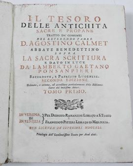 Calmet Agostino Il tesoro delle antichità sacre e profane...Verona e Venezia, Ramanzini e Pitteri, 1741-1750