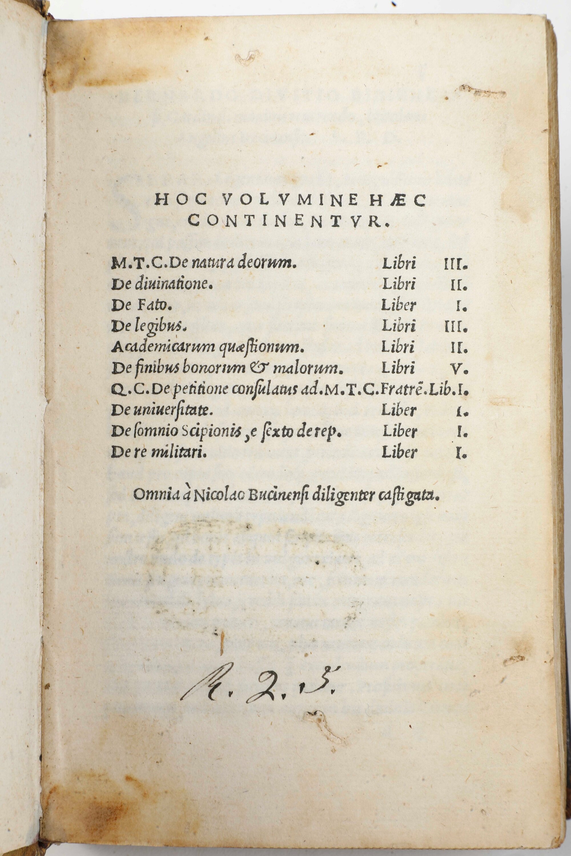 Cicerone Marco Tullio (106-43 a.C.) De Natura Deorum... De Divinatione... De Fato etc.. Firenze, Giunti, 1516