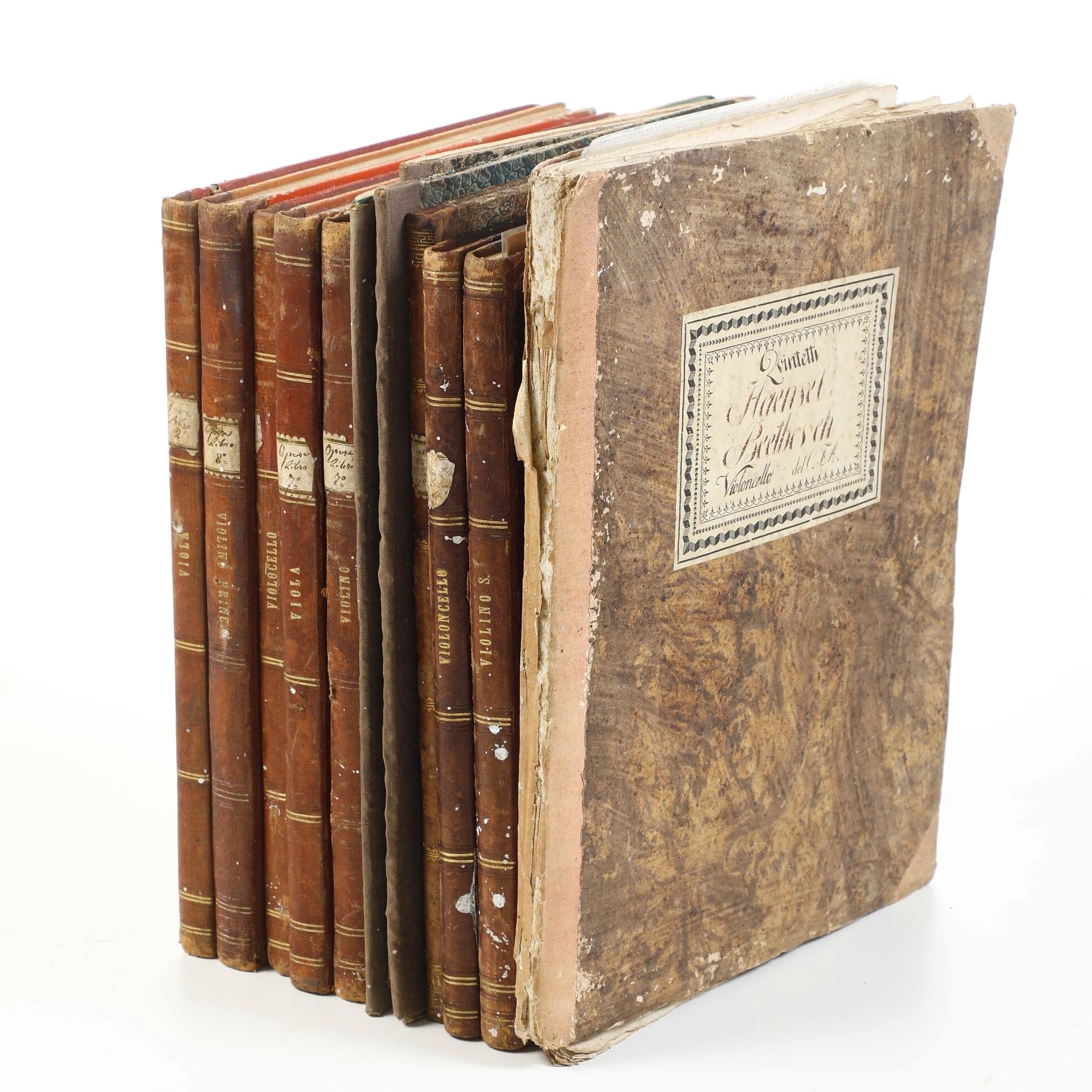 Dodici voll. in-folio. Rilegature in mezza pelle e cartonato del secolo XIX (usure, alcune rotture, piccole mancanze). Buone condizioni generali, con qualche macchia e bruniture. Per lo più composizioni per viola e violoncello, alcune manoscritte, altre a stampa