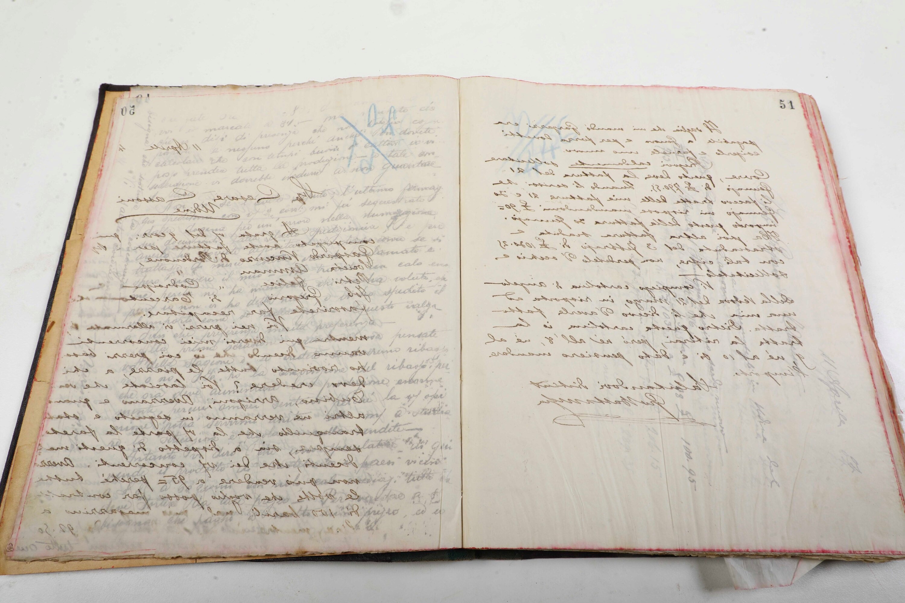 In-4° grande. Rilegatura coeva in tela (mancanze, usure, segni di umidità). Numerose copia di lettere su carta velina. Lettere per lo più in discreto stato conservativo ma alcune con strappi, perdita di testo e macchie