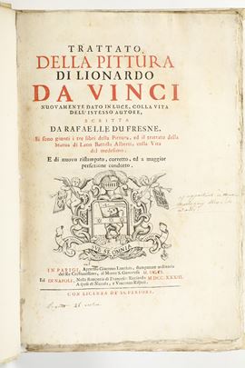Du Fresne Raffaele (1611-1661) Trattato della pittura di Lionardo da Vinci.. In Parigi, appresso Giacomo Langlois 1701 ed [..]