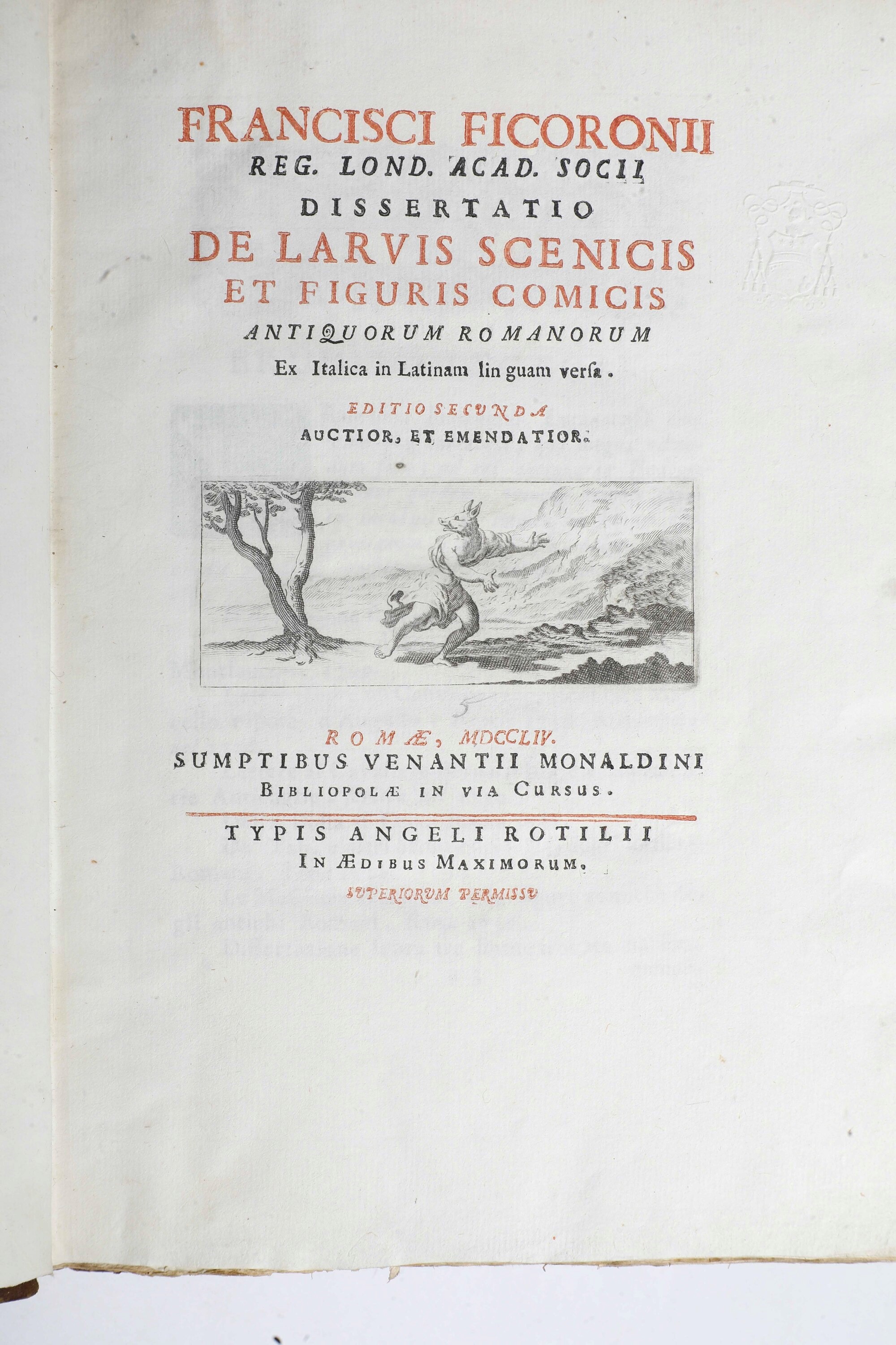 Ficoroni Francesco (1664-1747) De Larvis Scenicis et Figuris Comicis Roma, Monaldini, 1754