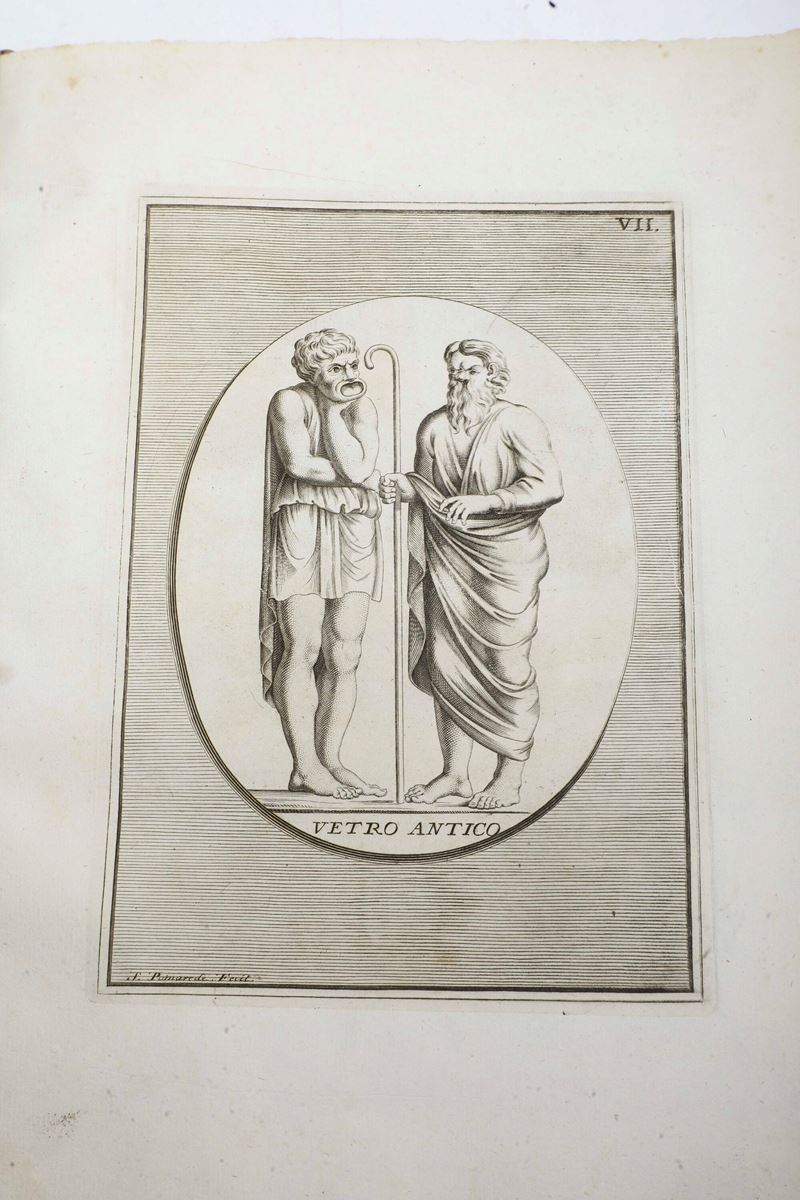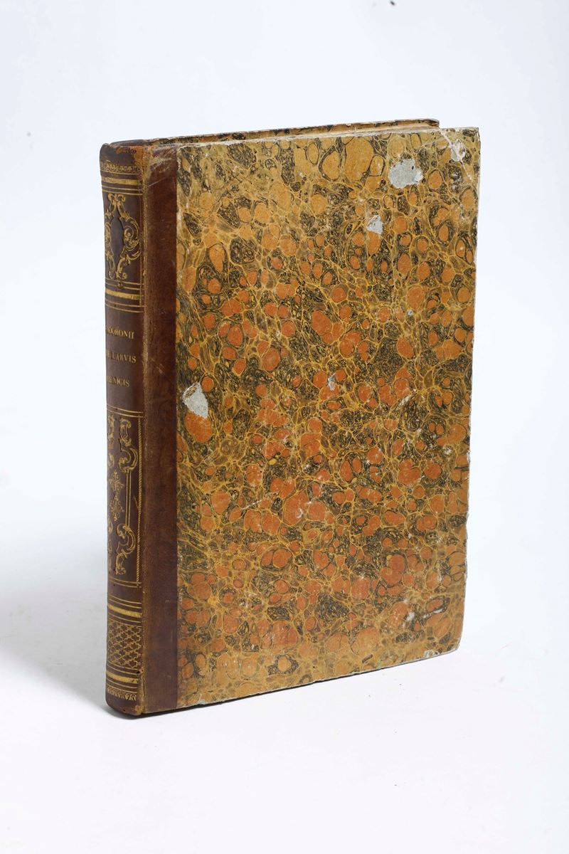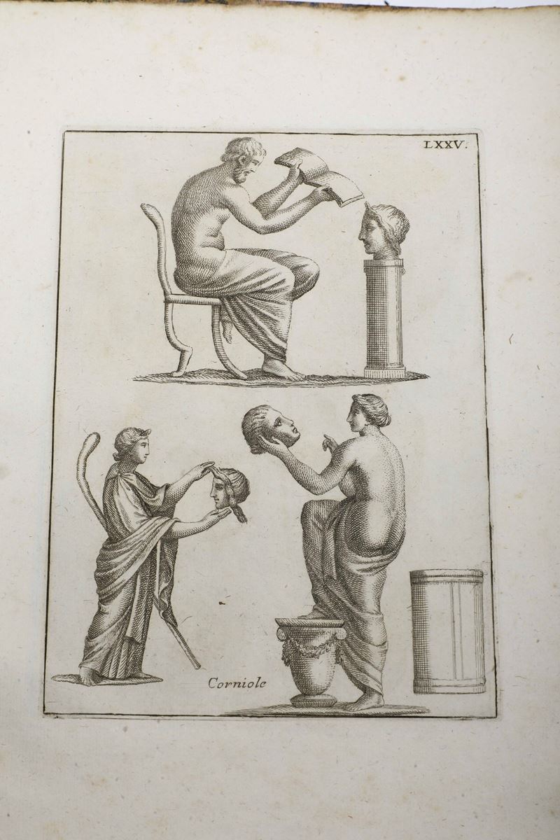 In-4°. Rilegature in mezza pelle del secolo XIX, bell’esemplare in barbe. Ex libris con timbro a secco al frontespizio con infine 84 tavole numerate