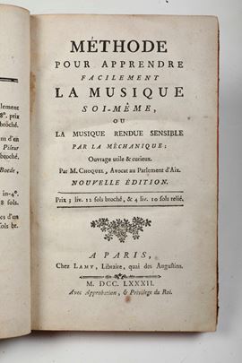 M. Choquel Methode pour apprendre la musique soi meme... nouvelles edition.. A Paris chez Lamy, 1782
