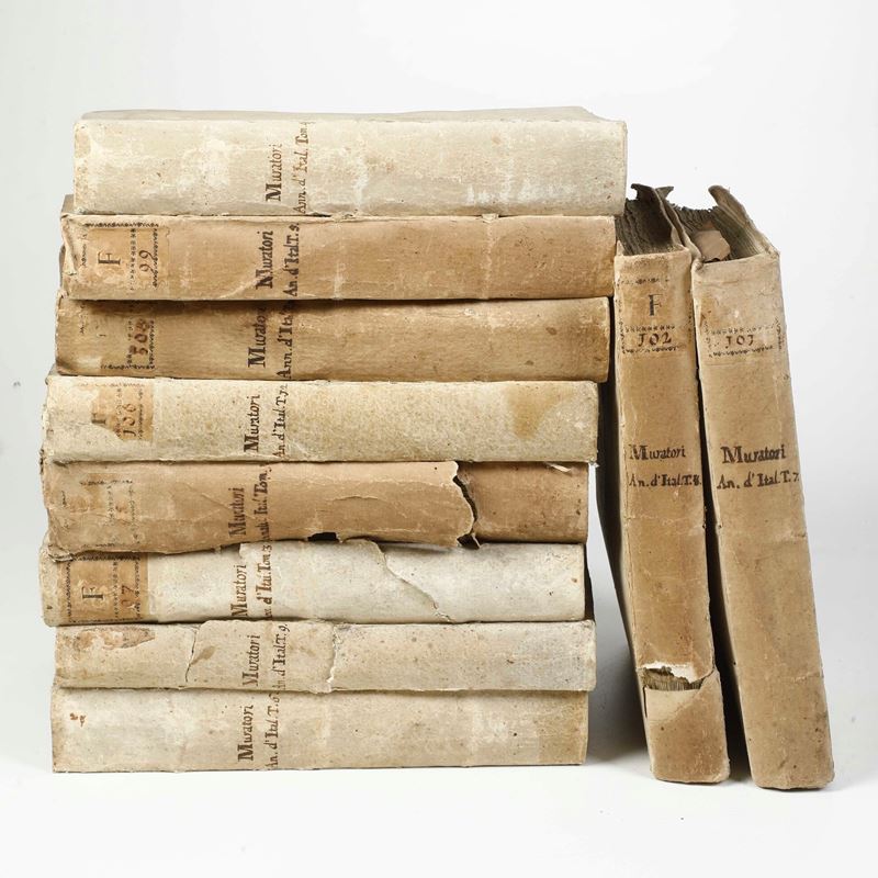 Unidici volumi in-folio. Scompleto, manca il tomo undecimo. Rilegatura del XVIII-XIX secolo in cartonato rustico (rotture e piccole mancanze).