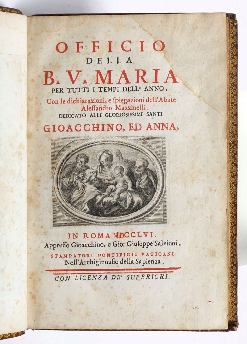 Officio della B.V. Maria per tutti i tempi dell'anno.. In Roma, appresso Gioacchino, e Gio: Giuseppe Salvioni, 1756