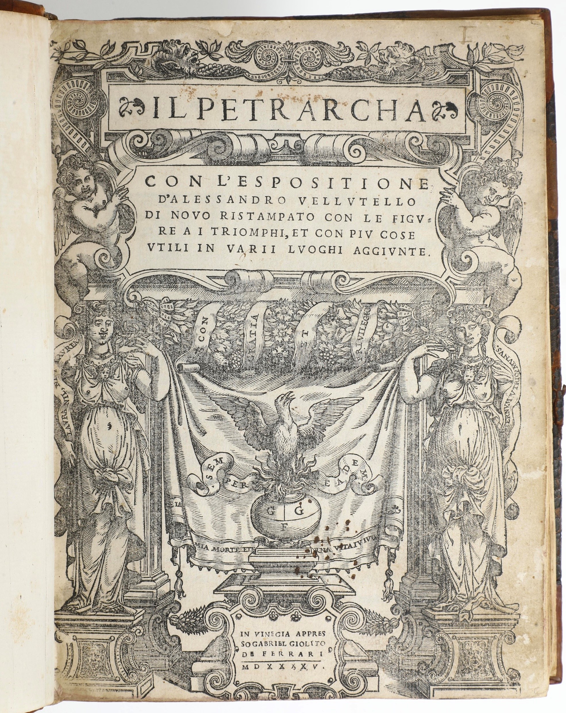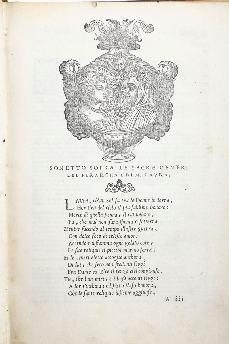 Petrarca Francesco (1304-1374) Il Petrarca con l’esposizione di Alessandro Vellutello.. In Vinegia, appresso Gabriele Giolito [..]