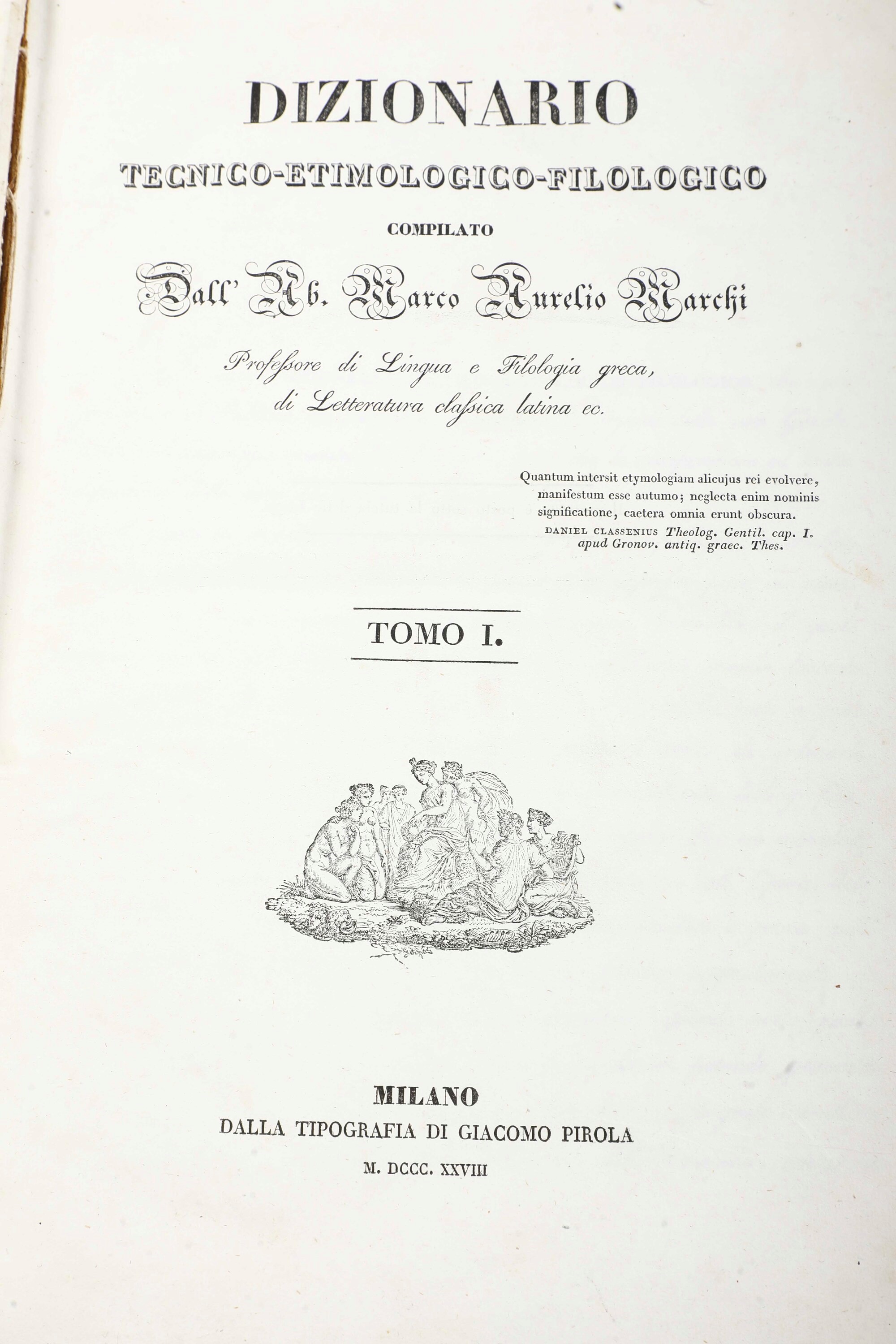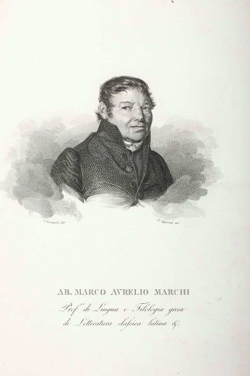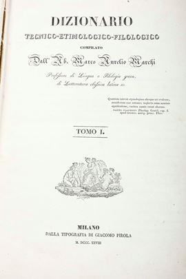 Si aggiungono nel lotto: Marchi, Dizionario filologico in 2 volumi, Milano, 1828 -1829 e altre dodici pubblicazioni di trascurabile valore di argomenti diversi