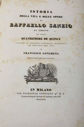 Quatremne de Quincy Antoine Chrysostome (1755-1849) / Longhena Francesco (1796-1864) Historia della vita e delle opere di Raffaelo Sanzio