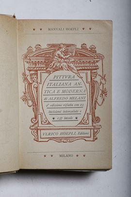 - A Melani, Pittura italiana, II edizione, Milano, Hoepli, s.d. Rilegatura originale, lievi bruniture ma buone esemplare;