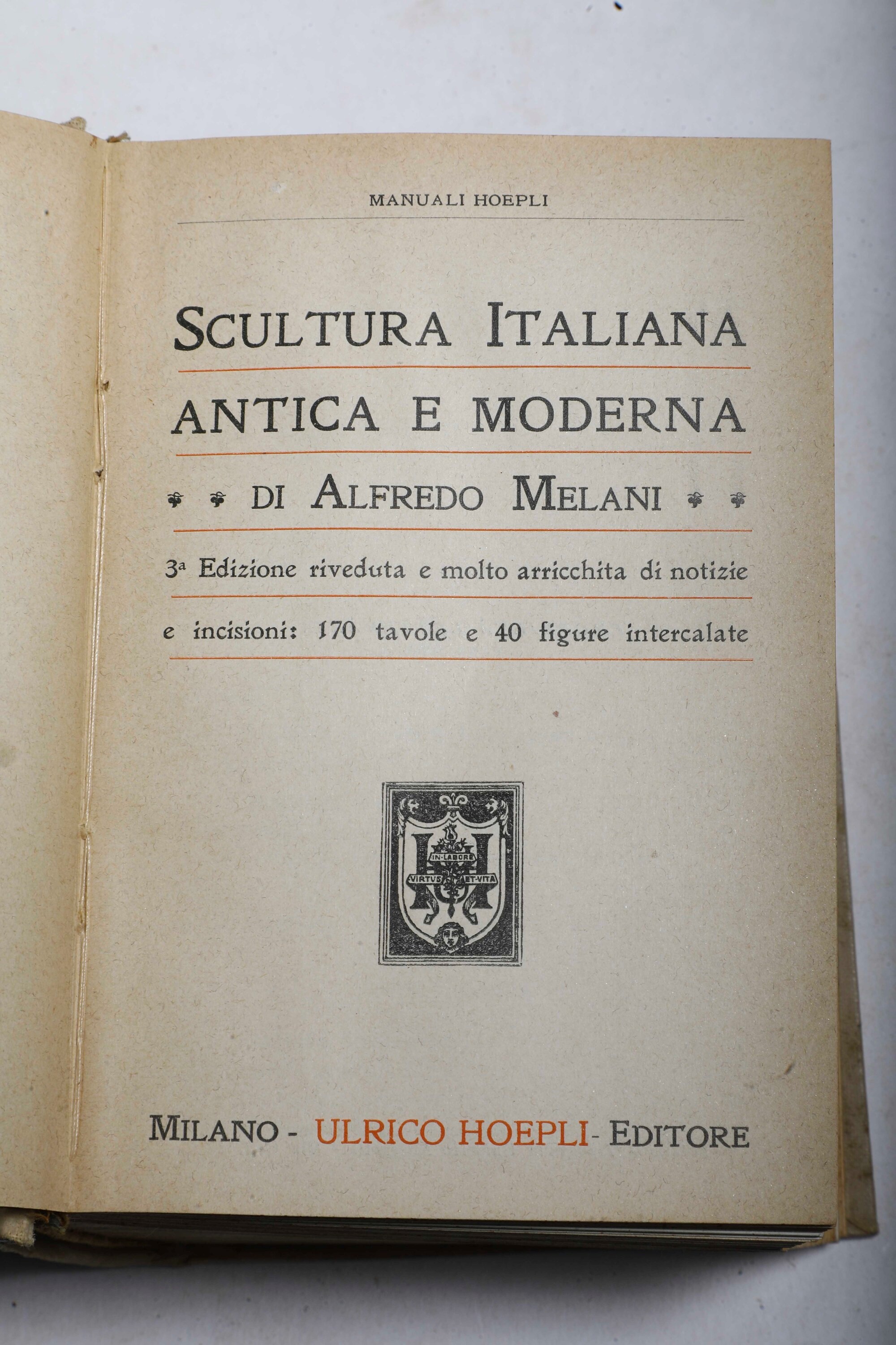 - A. Melani, Scultura italiana antica e moderna, III edizione, Milano, Hoepli, s.d. Rilegatura originale, lievi bruniture ma buone esemplare;