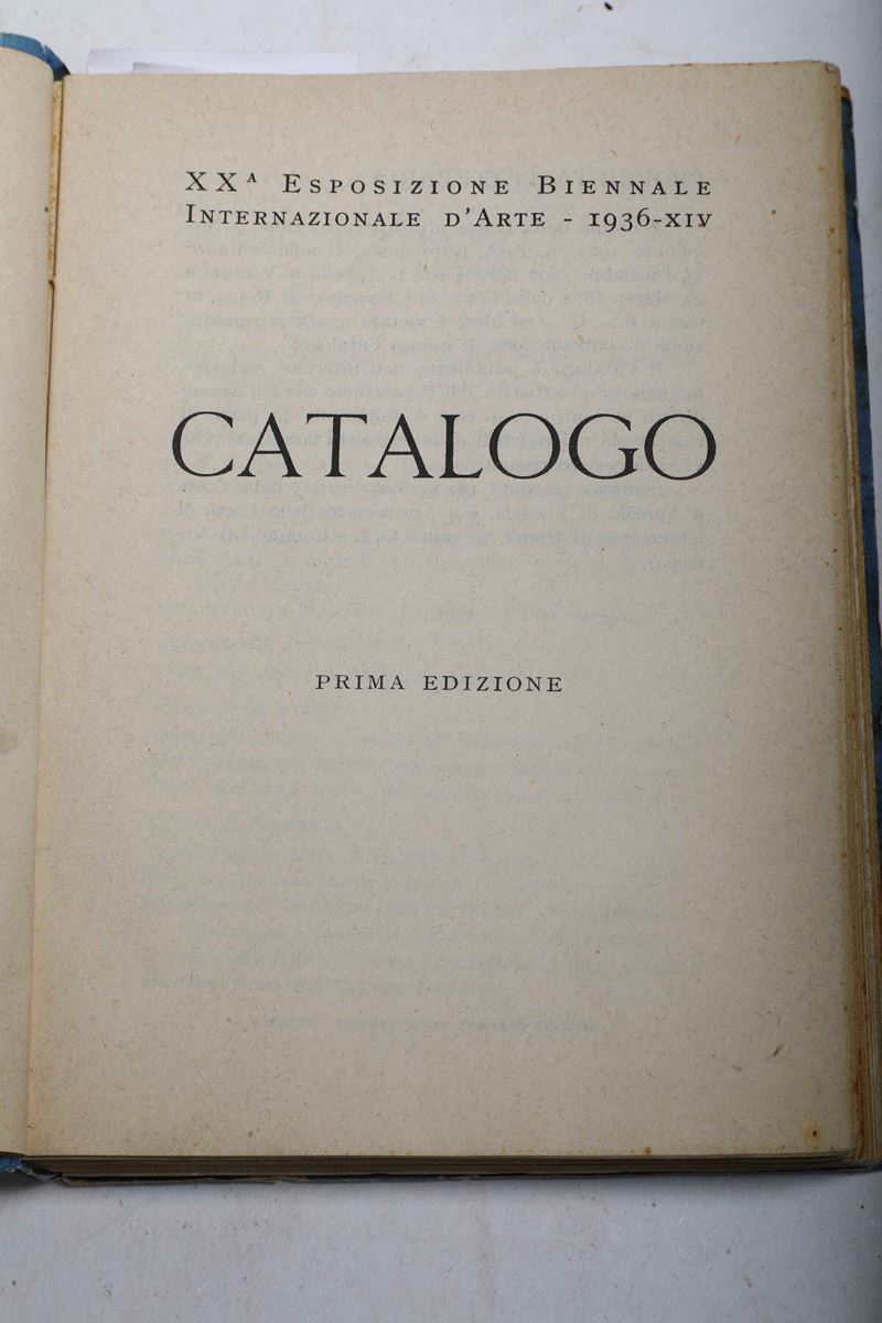 Si unisce nel lotto Catalogo della XX Biennale Internazionale di Venezia del 1936. Alcune macchie sulla legatura e lievi bruniture ma buon esemplare