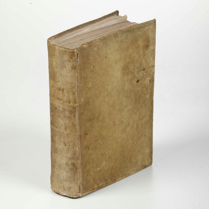 In-4°. Rilegatura antica in pergamena rigida. Esemplare un po’ sfascicolato, tracce di tarlo ai margini interni. Alcuni quaderni di dimensione minore. Restauri e piccoli difetti e con illustrazioni silografiche nel testo
