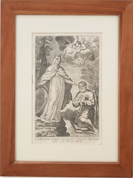 Incisione su rame. Bell'impressione che raffigura il miracolo occorso in terra ligure, riprodotto con alcune varianti da diversi incisori in particolare nel XVIII-XIX secolo. Entro cornice. Dimensioni: 20x31 cm