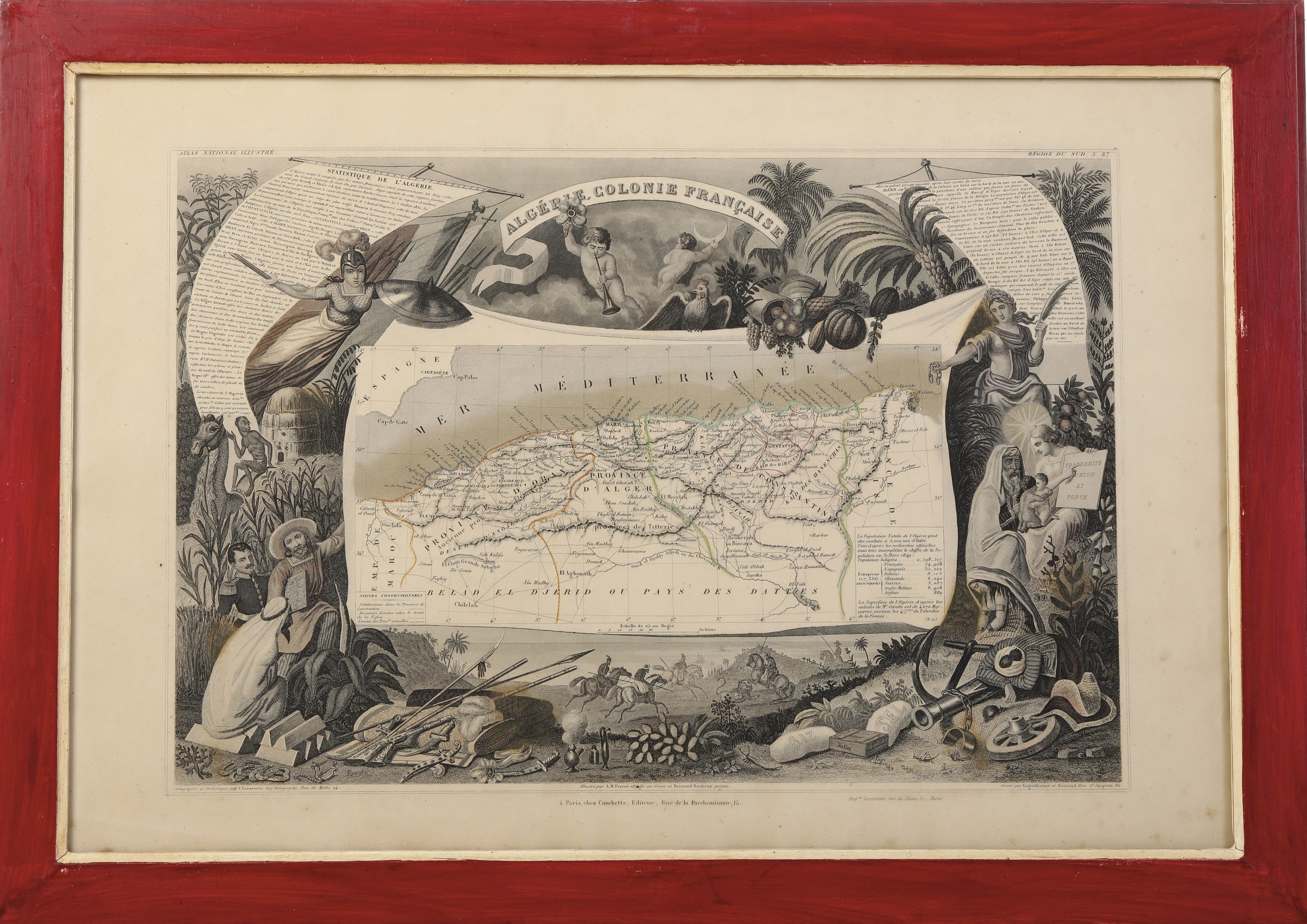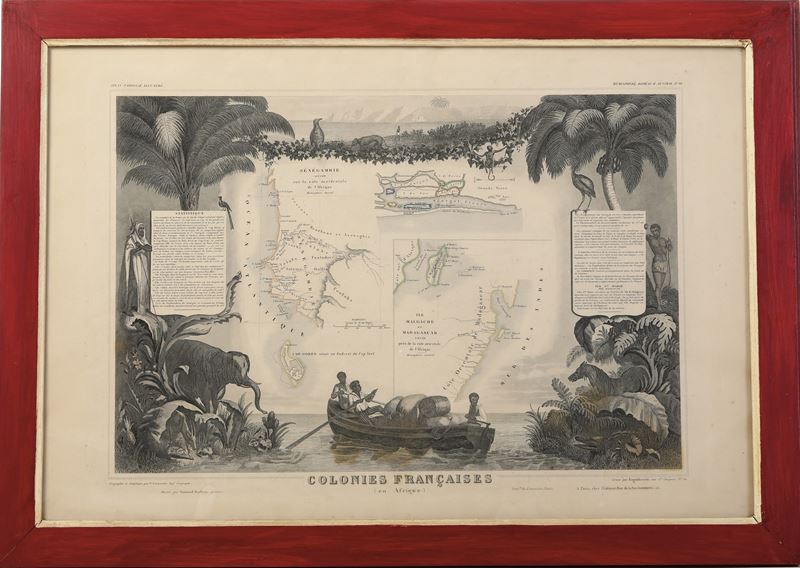 Sei carte geografiche di regioni e colonie francesi. XIX secolo