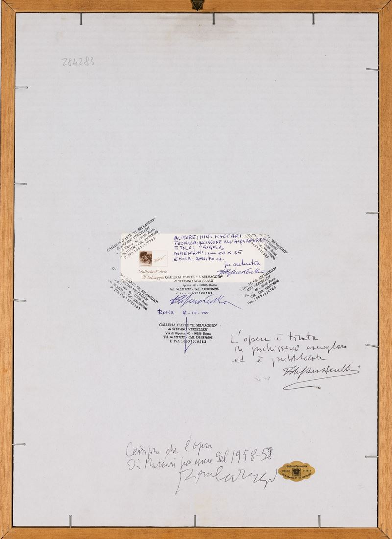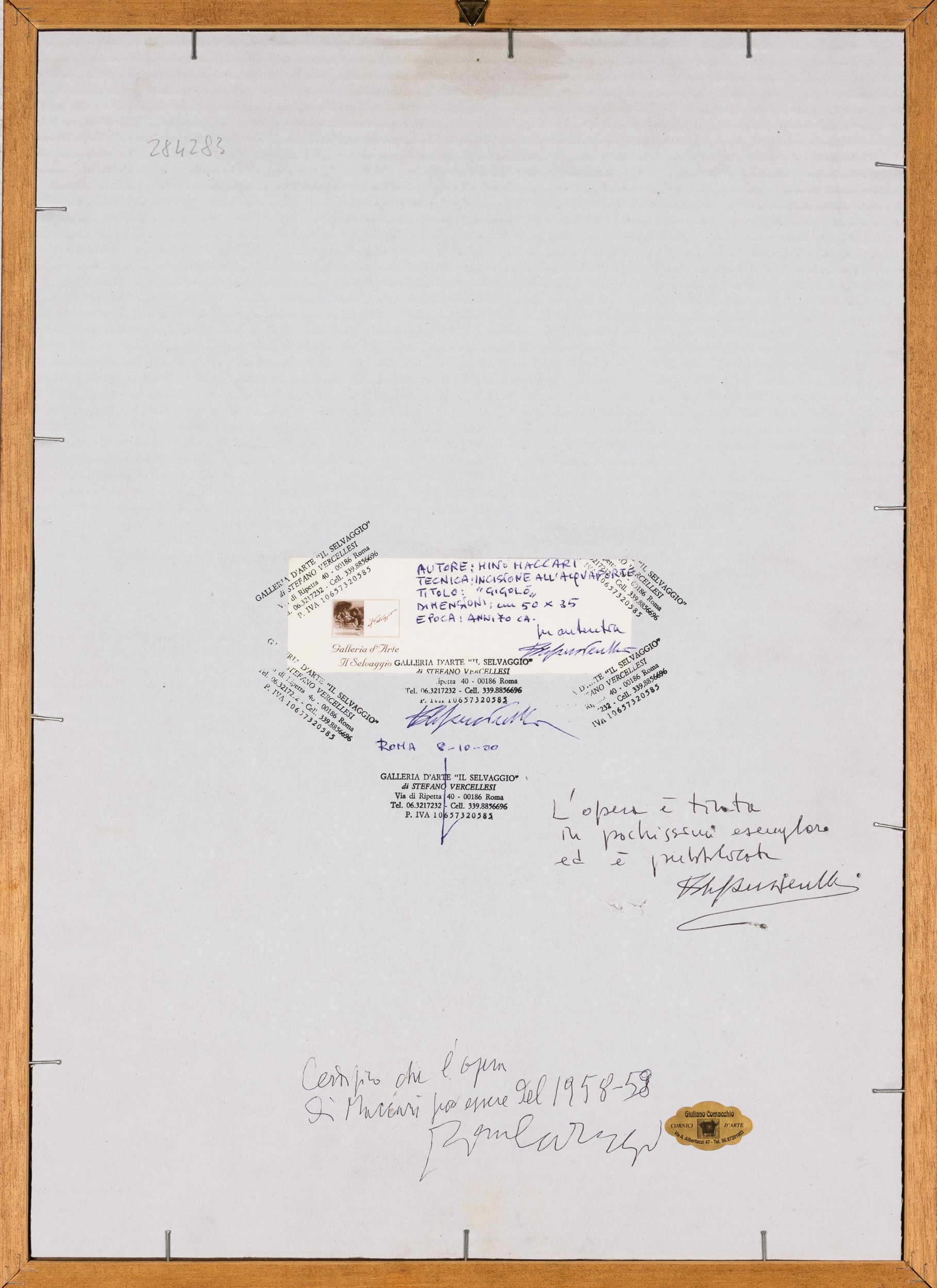 timbri ed etichetta al retro della Galleria d'arte Il Selvaggio, Roma