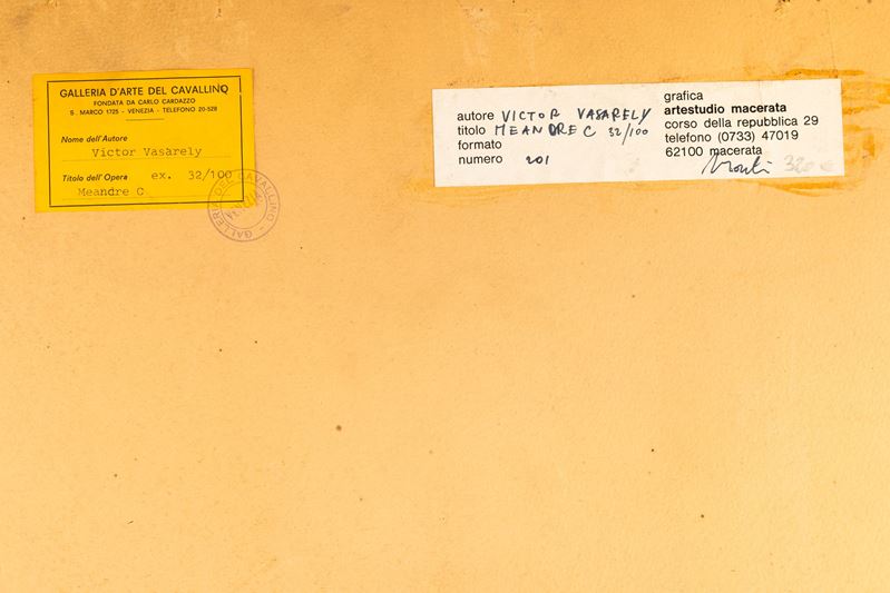 etichetta e timbro al retro della Galleria d'arte del Cavallino, Venezia