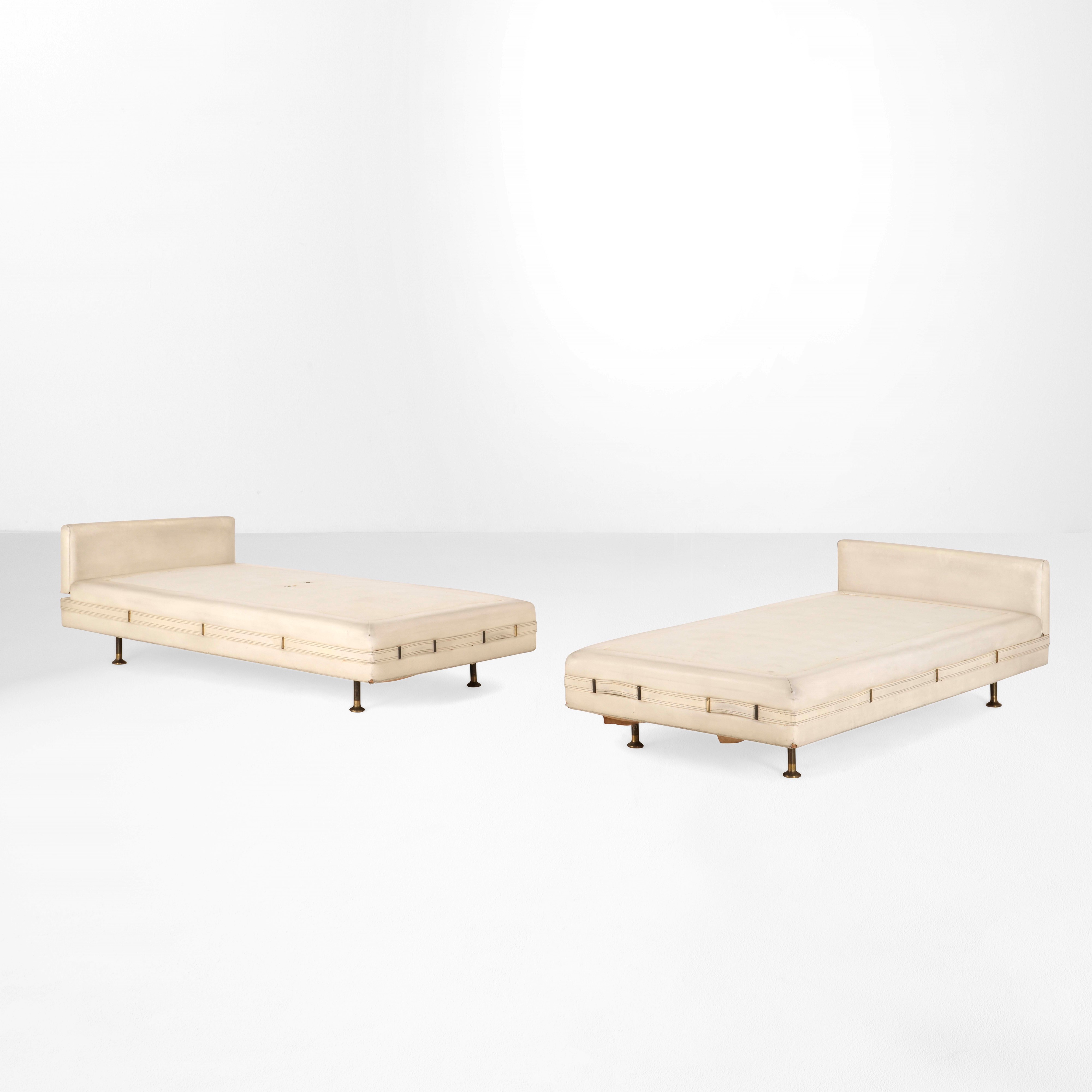 Struttura in legno, sostegni e dettagli in ottone e rivestimento in skai.