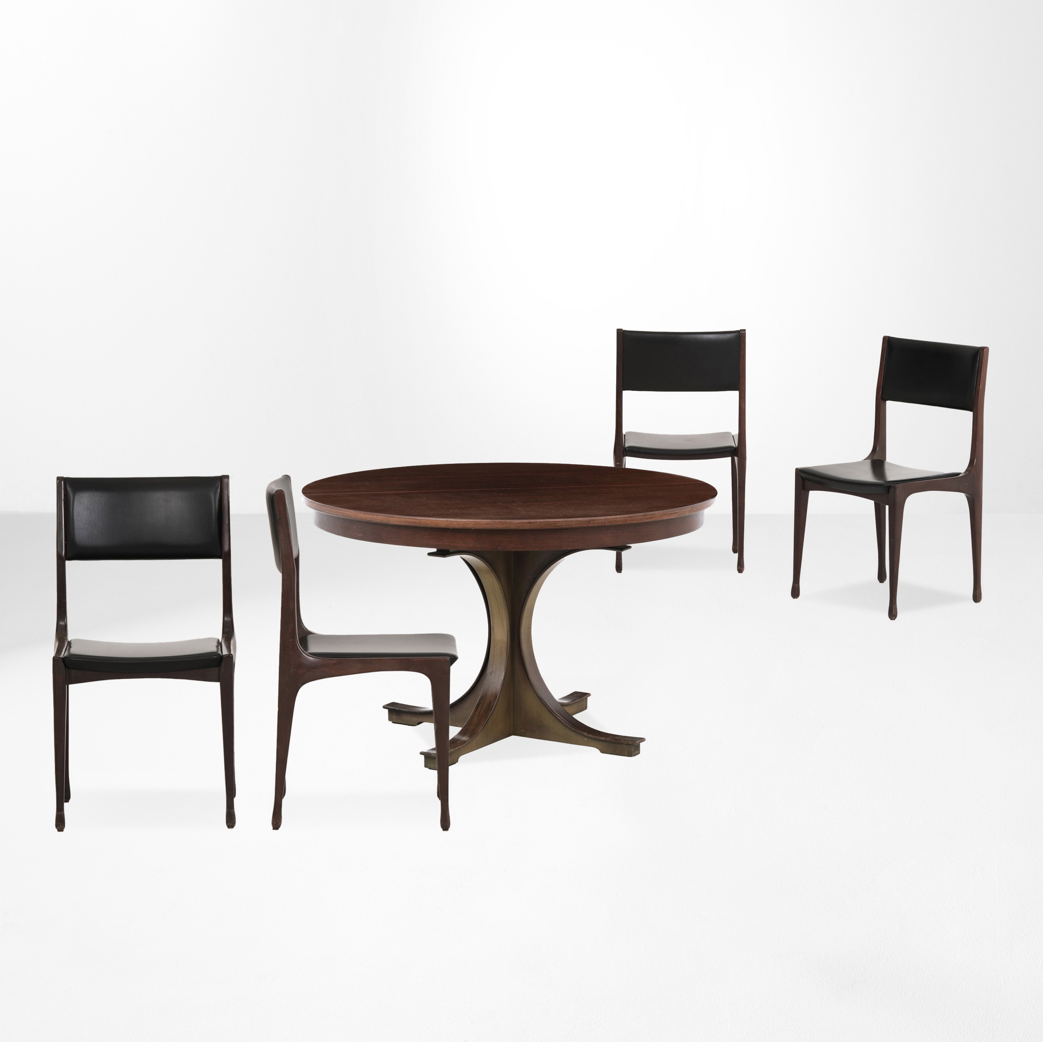 Set di quattro sedie mod. 693 su disegno di Carlo de Carli con tavolo allungabile