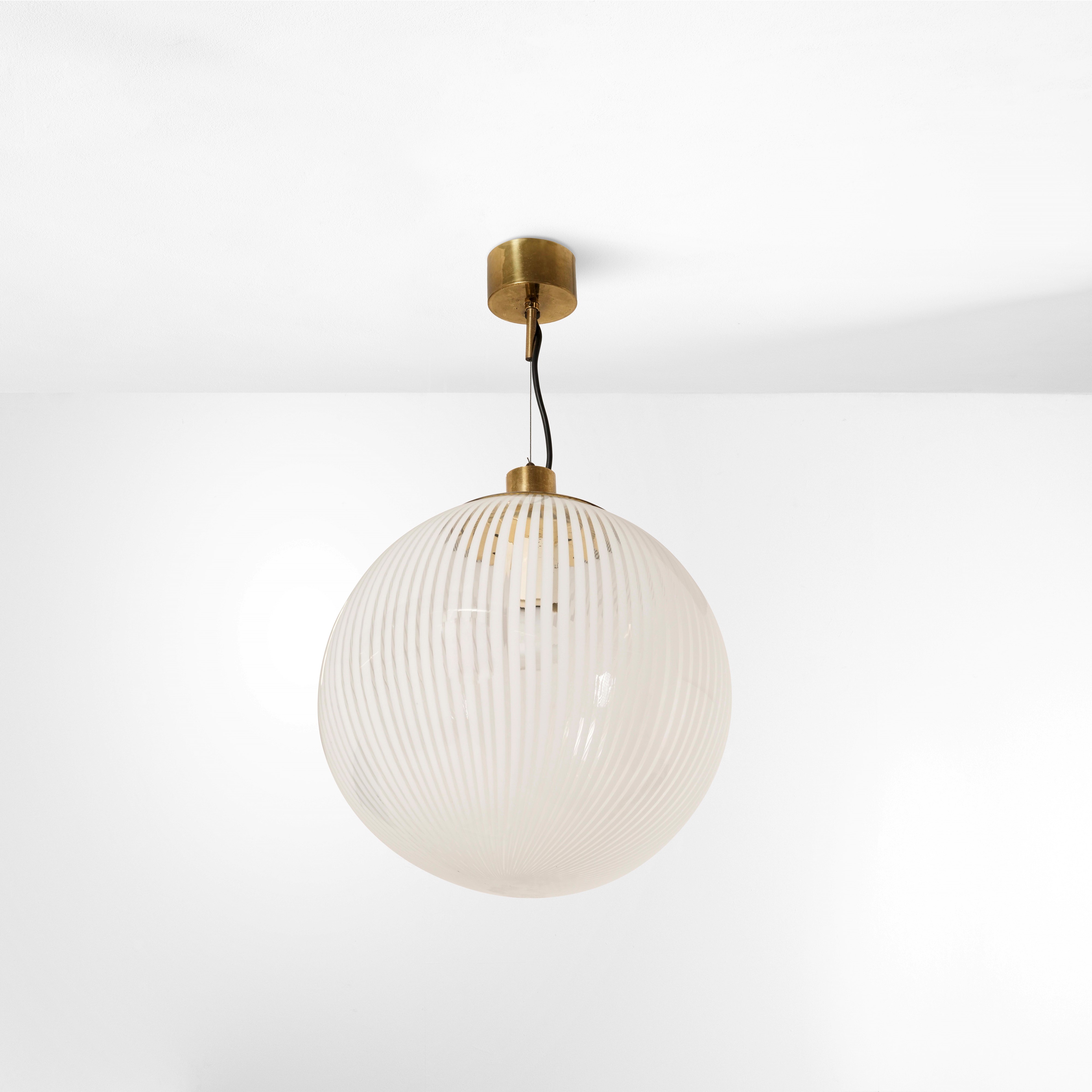Struttura in ottone con diffusore in vetro incolore e lattimo.