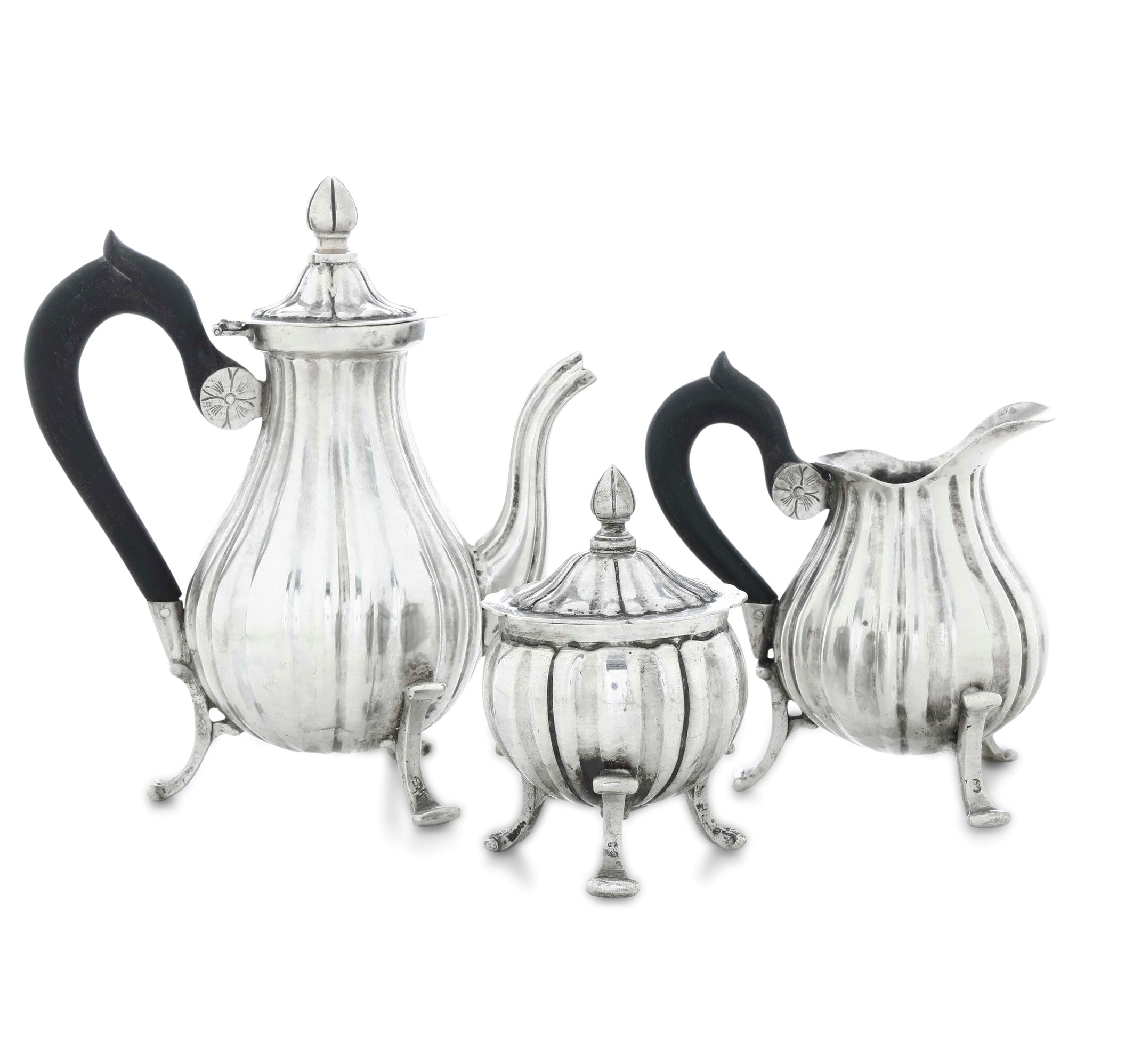 Caffettiera, lattiera e zuccheriera. Milano, XIX-XX secolo, probabile argentiere Gian Battista Croff (1756-1840)