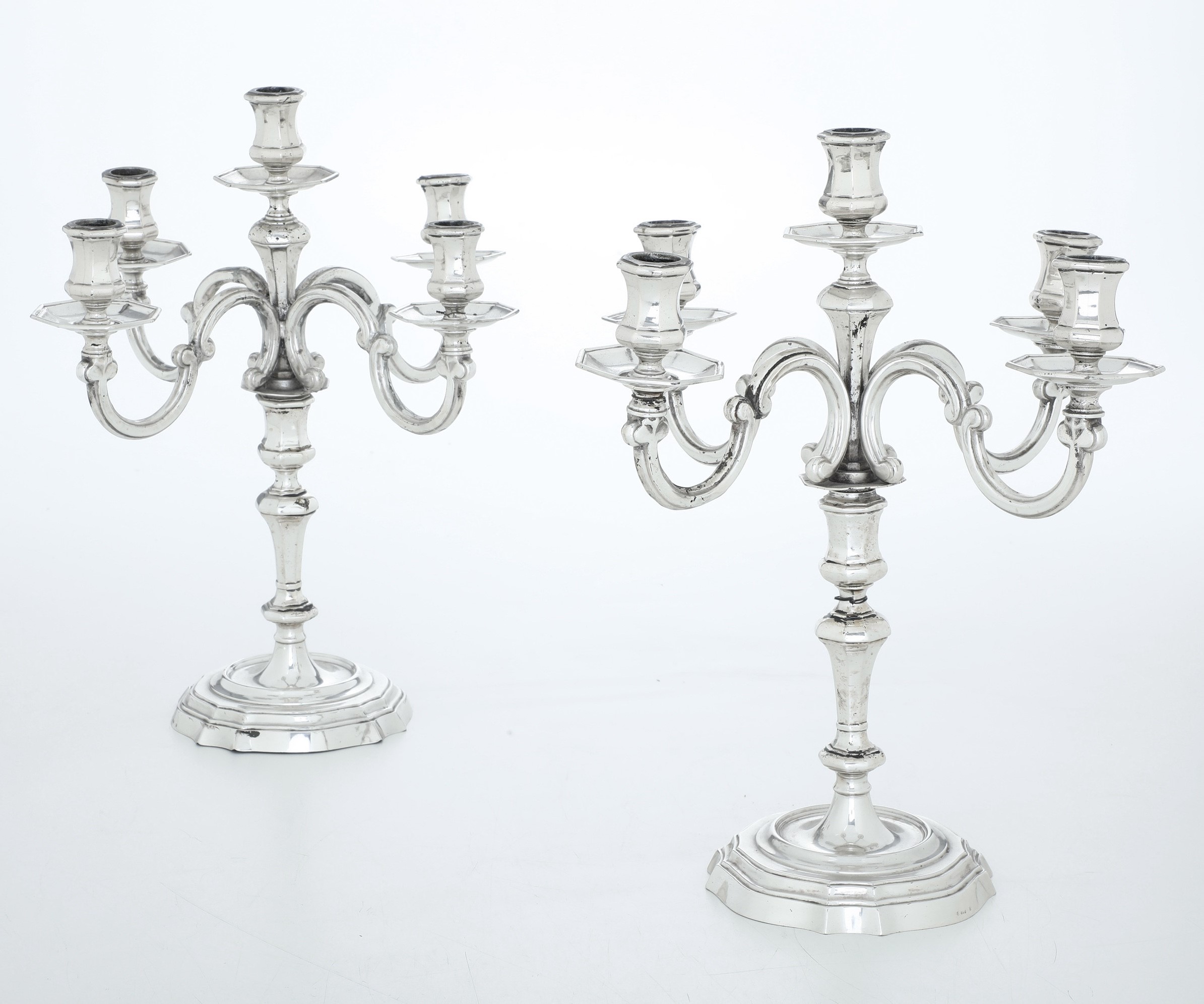 Coppia di candelabri a 5 braccia. Argenteria italiana del XX secolo