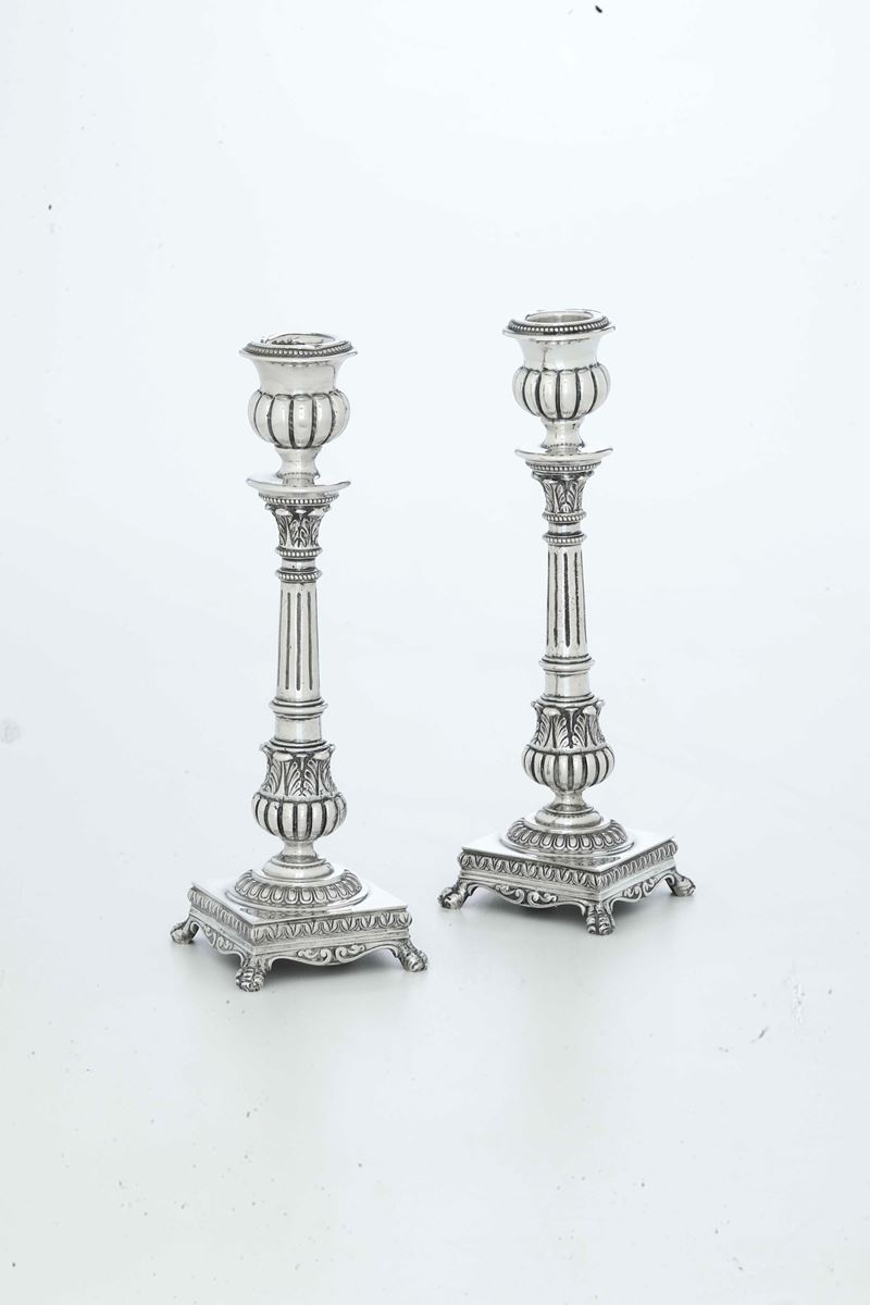 Coppia di candelieri. Argenteria milanese del XX secolo, argentiere Virginio Pobbiati