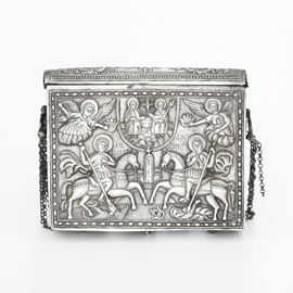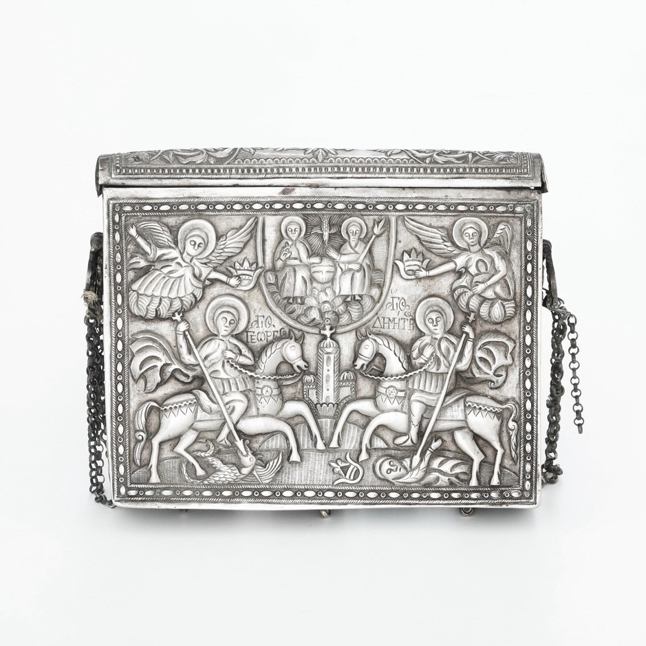 Elaborata raffigurazione con San Giorgio e San Demetrio di iconografia ortodossa