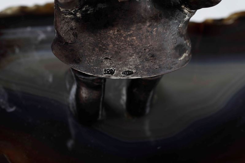 Due figure caricaturali di cui una in argento con base in pietra dura. Argenteria milanese del XX secolo. Argentiere Eredi [..]