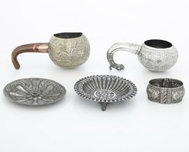 Due piattini un bracciale e due kovsh. Arte ottomana, area balcanica o vicino Oriente