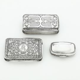 Due scatole e porta pillole. Differenti argenterie del XX secolo