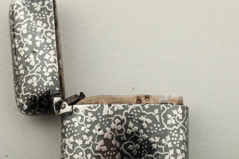 Argento fuso sagomato cesellato e niellat