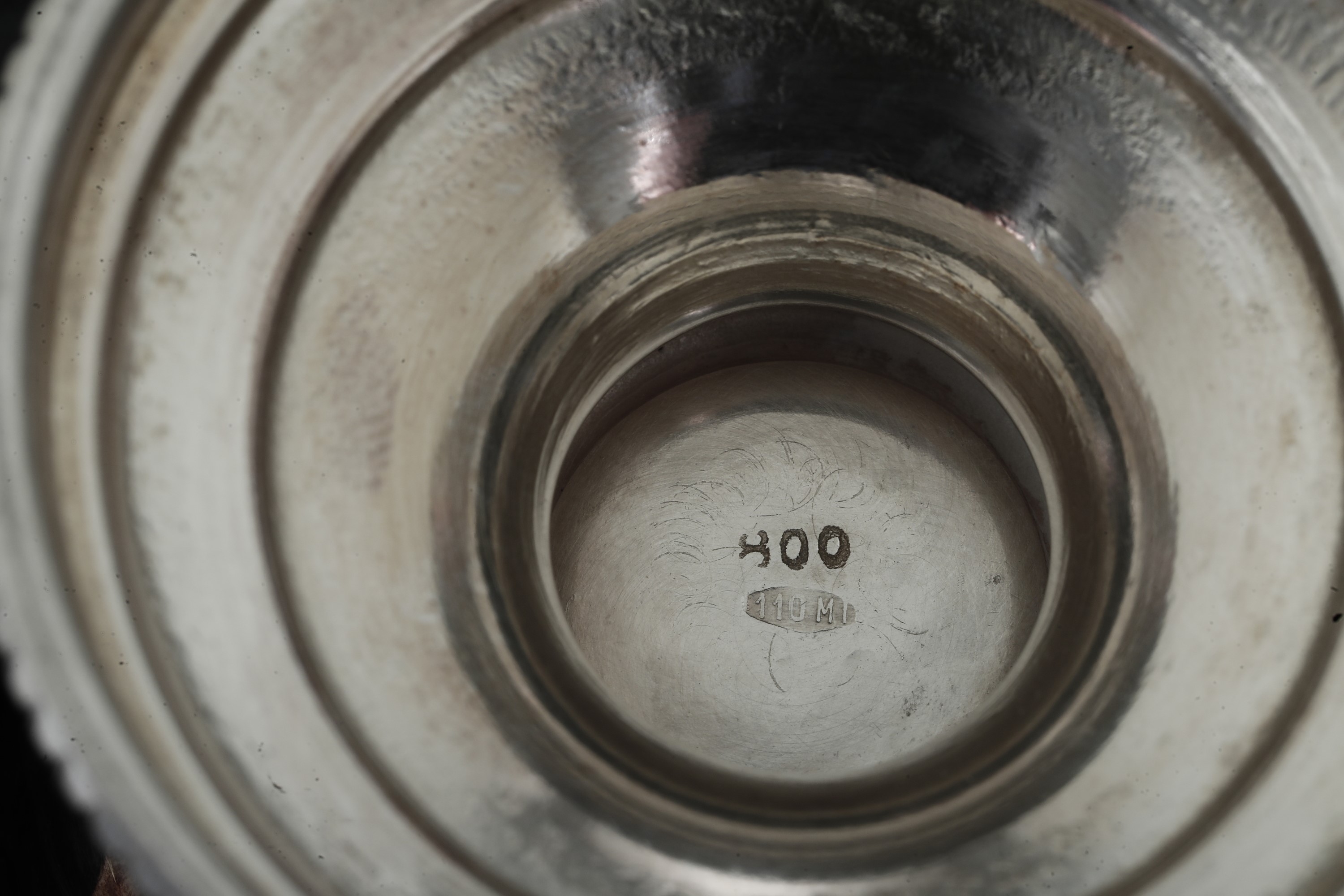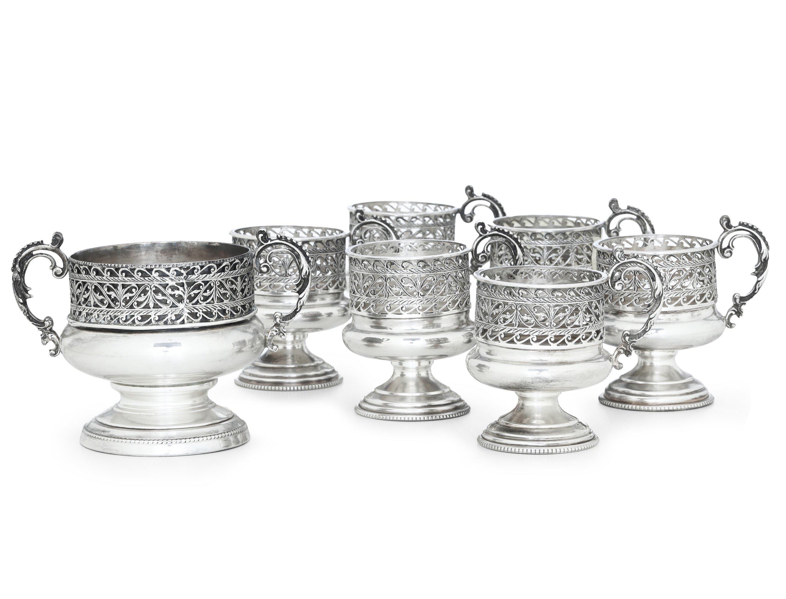 Lotto composto da sei porta tazze ed un porta zuccheriera. Argenteria milanese della prima metà del XX secolo, argentiere Carmelo Ganci