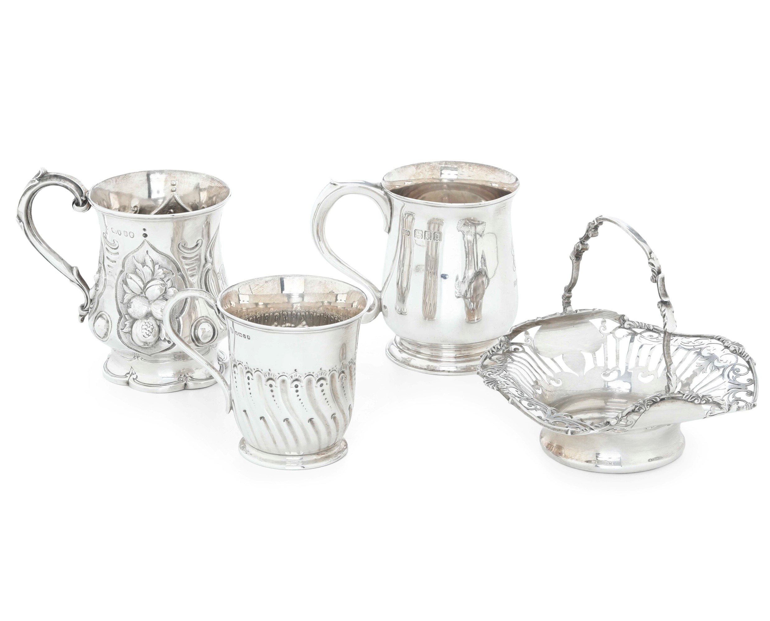 Lotto composto da tre piccoli boccali ed un cestino. Inghilterra XIX-XX secolo