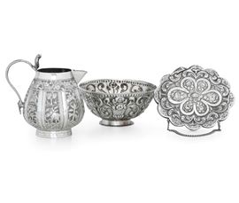 Lotto composto da una piccola brocca, una ciotola ed un piccolo specchio. Varie manifatture orientali del XX secolo