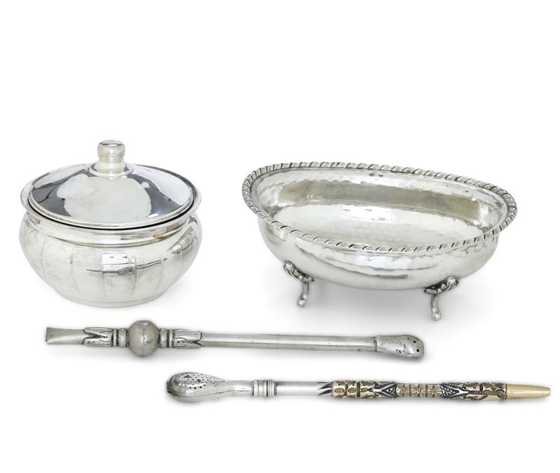 Lotto di due zuccheriere e due cannucce per il mate, Italia, XX secolo (e altre manifatture)
