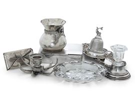 Lotto di oggetti in argento e vetro. Varie manifatture del XX secolo