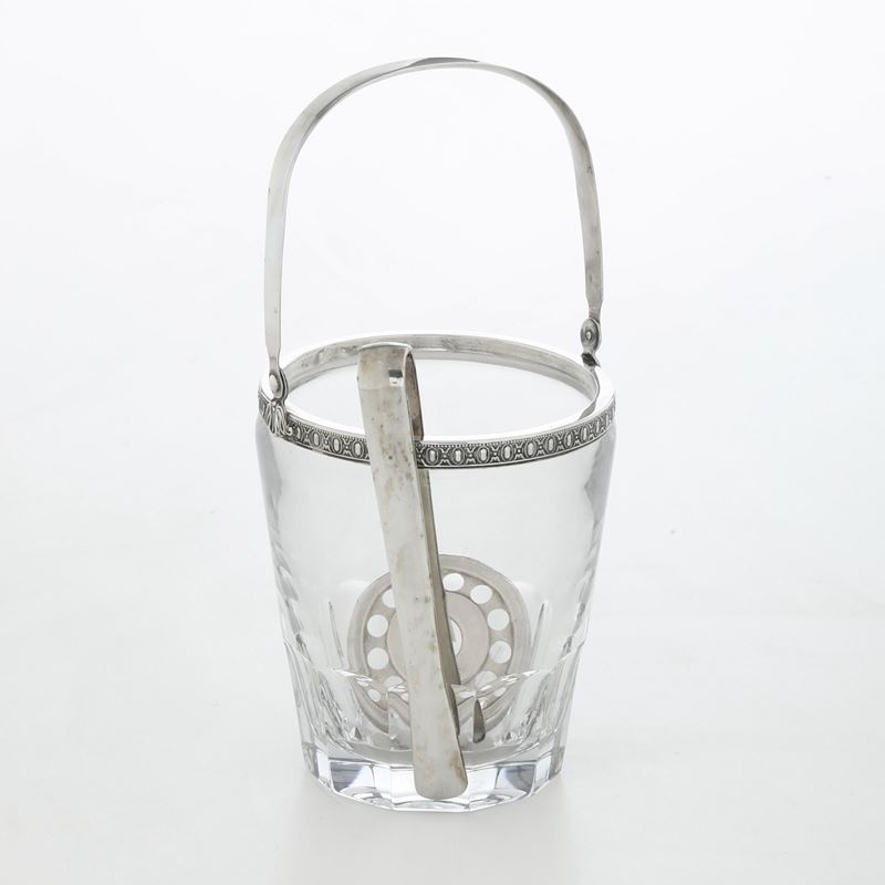 Secchiello in cristallo con finimenti in argento. Argenteria toscana del XX secolo.