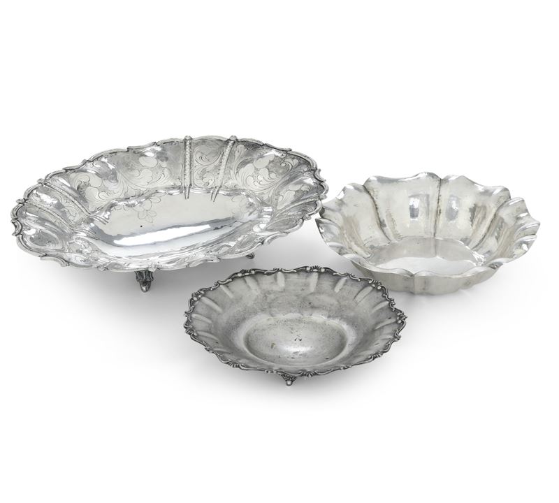 Tre centrotavola. Argenteria italiana del XX secolo, argentieri differenti