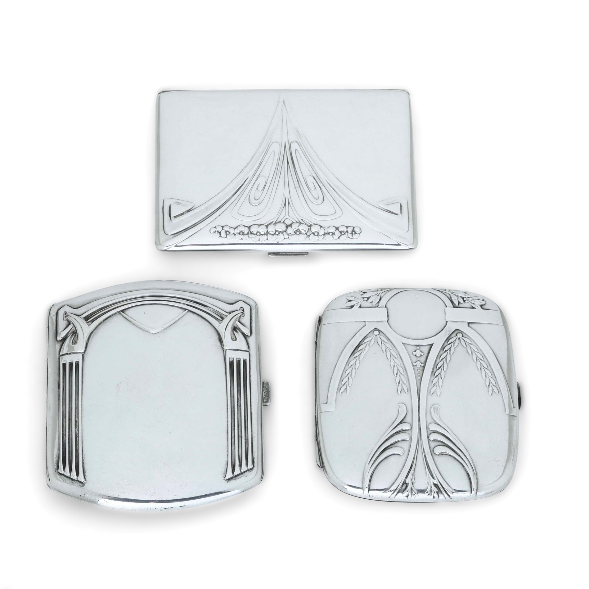 Tre portasigarette Art Noveau. Uno Inghilterra, due Germania, inizi XX secolo